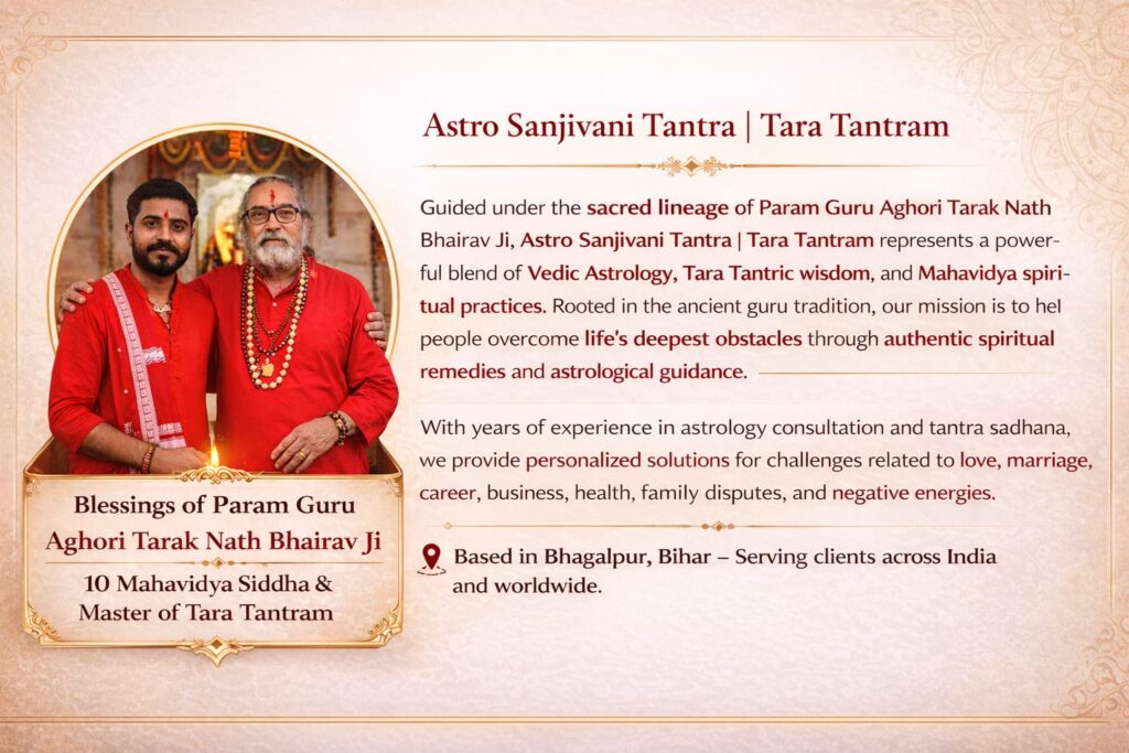 Astro Sanjivani Tantra | Tara Tantram is a sacred blend of ancient wisdom and modern faith. Here, through Vedic Astrology, Tara Tantram, and deep spiritual knowledge, we provide solutions to every problem in your life. With years of rich experience, we offer highly personal and powerful remedies tailored according to your kundli and current life situation.